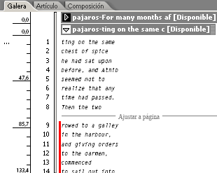 Es una modalidad muy similar a la anterior. La diferencia es que sí se representa el ancho de línea y aparecen marcas de cambio de columna. La tipografía sigue siendo básica y no pretende representar la realidad del diseño.