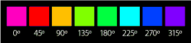 Los tonos correspondientes a los distintos ángulos de matiz o tono son aproximadamente: