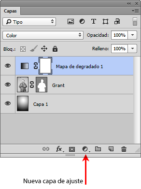 Ya tenemos el degradado y ya está aplicada la capa de ajuste de mapa de degradado.