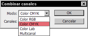 Desde cualquiera de los archivos, vamos a la paleta "Canales" y marcamos el submenú "Combinar canales".
